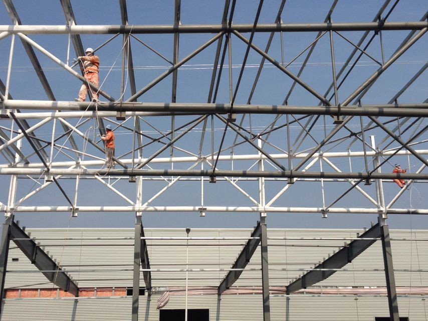 東本二廠二期項目樹脂車間防火涂料工程經過兩個多月的施工,已順利完工。為了保證防火涂料施工質量,興海消防工作人員在現場查看施工效果,未發現起皮等不良現象。下圖于2014年5月7日在工地現場拍攝,東本二廠二期項目樹脂車間防火涂料施工后效果圖,供大家參考。